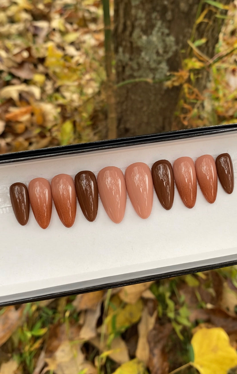 A set of 10 press on nails. Each order of a  press on nail set comes with instructions on how to apply the press on nails as well as an option to purchase a nail glue care pack, a sticky tab care pack, or none. I do have an option to purchase and upgraded nail care pack as well. (THIS IS HIGHLY RECOMMENDED) Nails are reusable with the proper care. CUSTOMIZATION IS ALWAYS POSSIBLE.