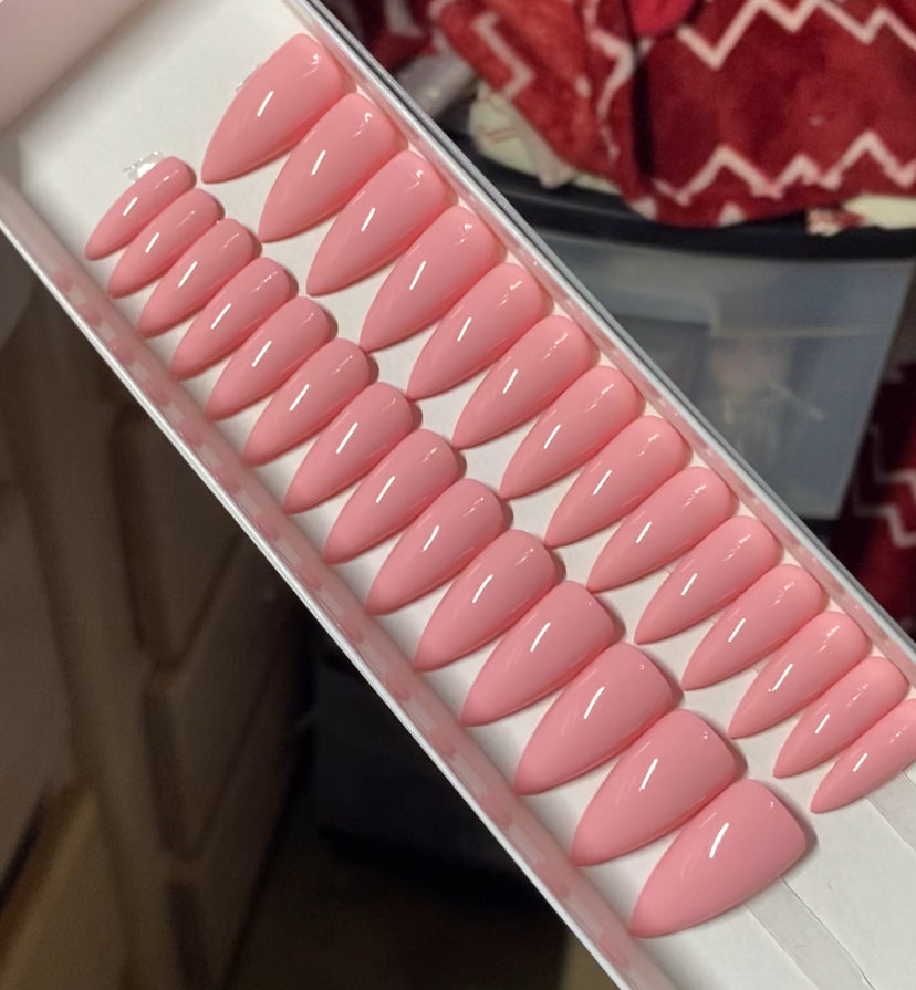 A set of 10 press on nails. Each order of a press on nail set comes with instructions on how to apply the press on nails as well as an option to purchase a nail glue care pack, a sticky tab care pack, or none. I do have an option to purchase and upgraded nail care pack as well. (THIS IS HIGHLY RECOMMENDED) Nails are reusable with the proper care. CUSTOMIZATION IS ALWAYS POSSIBLE.