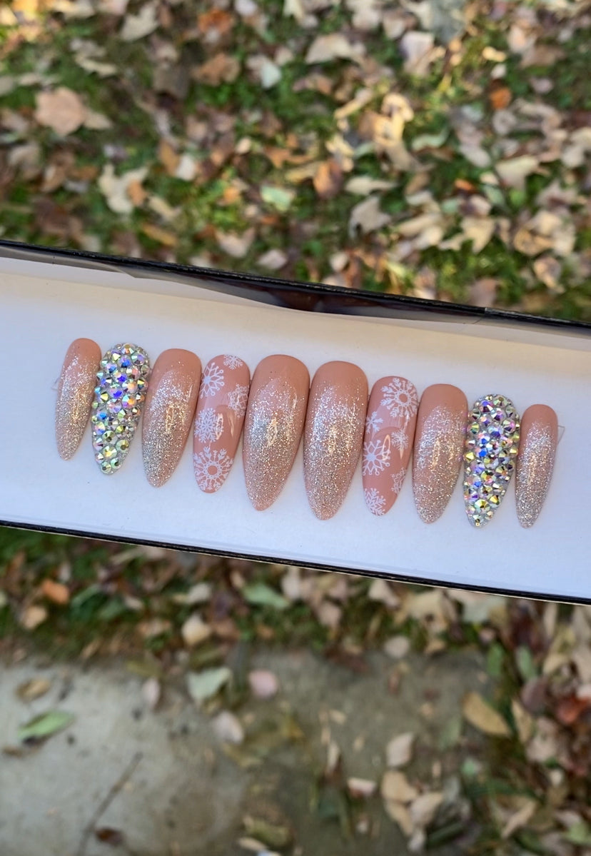 A set of 10 press on nails. Each order of a press on nail set comes with instructions on how to apply the press on nails as well as an option to purchase a nail glue care pack, a sticky tab care pack, or none. I do have an option to purchase and upgraded nail care pack as well. (THIS IS HIGHLY RECOMMENDED) Nails are reusable with the proper care. CUSTOMIZATION IS ALWAYS POSSIBLE.