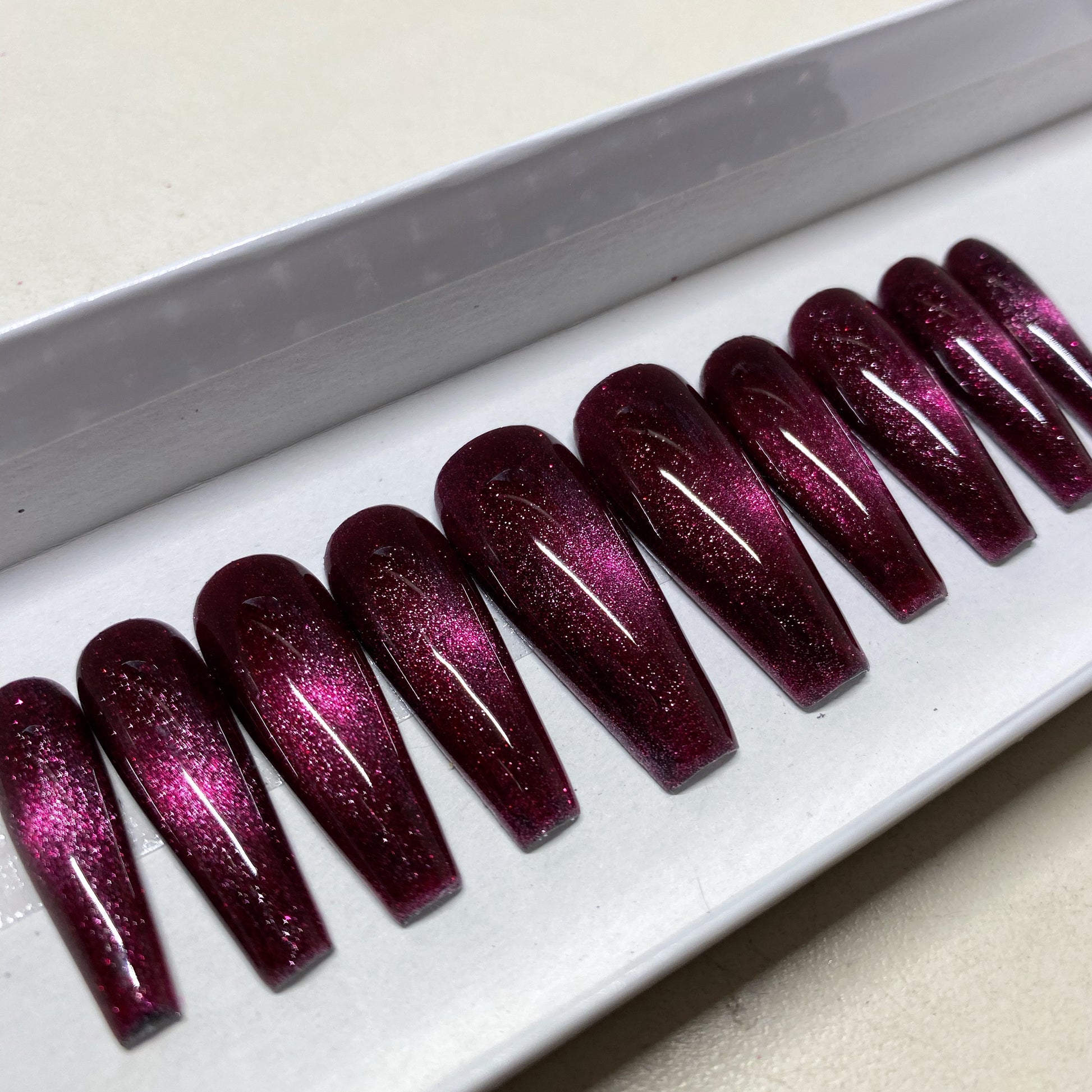 A set of 10 press on nails. Each order of a press on nail set comes with instructions on how to apply the press on nails as well as an option to purchase a nail glue care pack, a sticky tab care pack, or none. I do have an option to purchase and upgraded nail care pack as well. (THIS IS HIGHLY RECOMMENDED) Nails are reusable with the proper care. CUSTOMIZATION IS ALWAYS POSSIBLE.