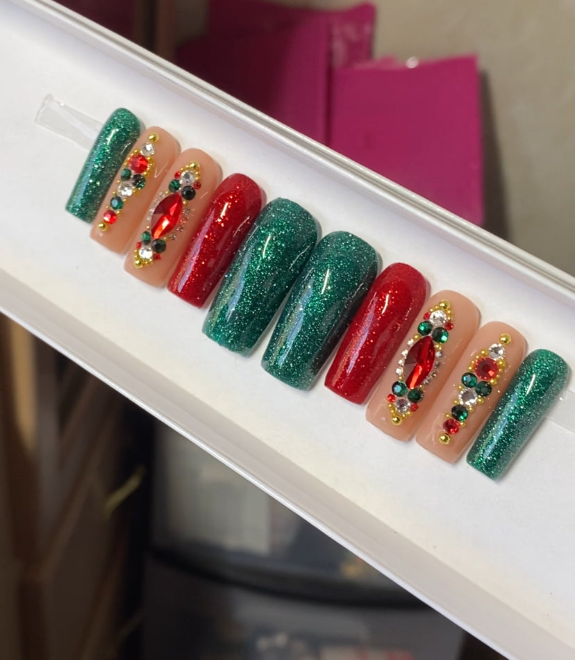 A set of 10 press on nails. Each order of a  press on nail set comes with instructions on how to apply the press on nails as well as an option to purchase a nail glue care pack, a sticky tab care pack, or none. I do have an option to purchase and upgraded nail care pack as well. (THIS IS HIGHLY RECOMMENDED) Nails are reusable with the proper care. CUSTOMIZATION IS ALWAYS POSSIBLE.