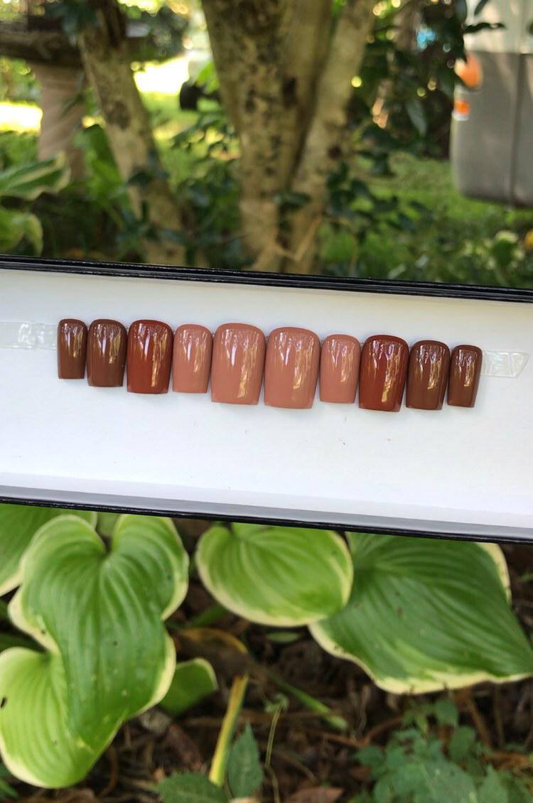 A set of 10 press on nails. Each order of a press on nail set comes with instructions on how to apply the press on nails as well as an option to purchase a nail glue care pack, a sticky tab care pack, or none. I do have an option to purchase and upgraded nail care pack as well. (THIS IS HIGHLY RECOMMENDED) Nails are reusable with the proper care. CUSTOMIZATION IS ALWAYS POSSIBLE.