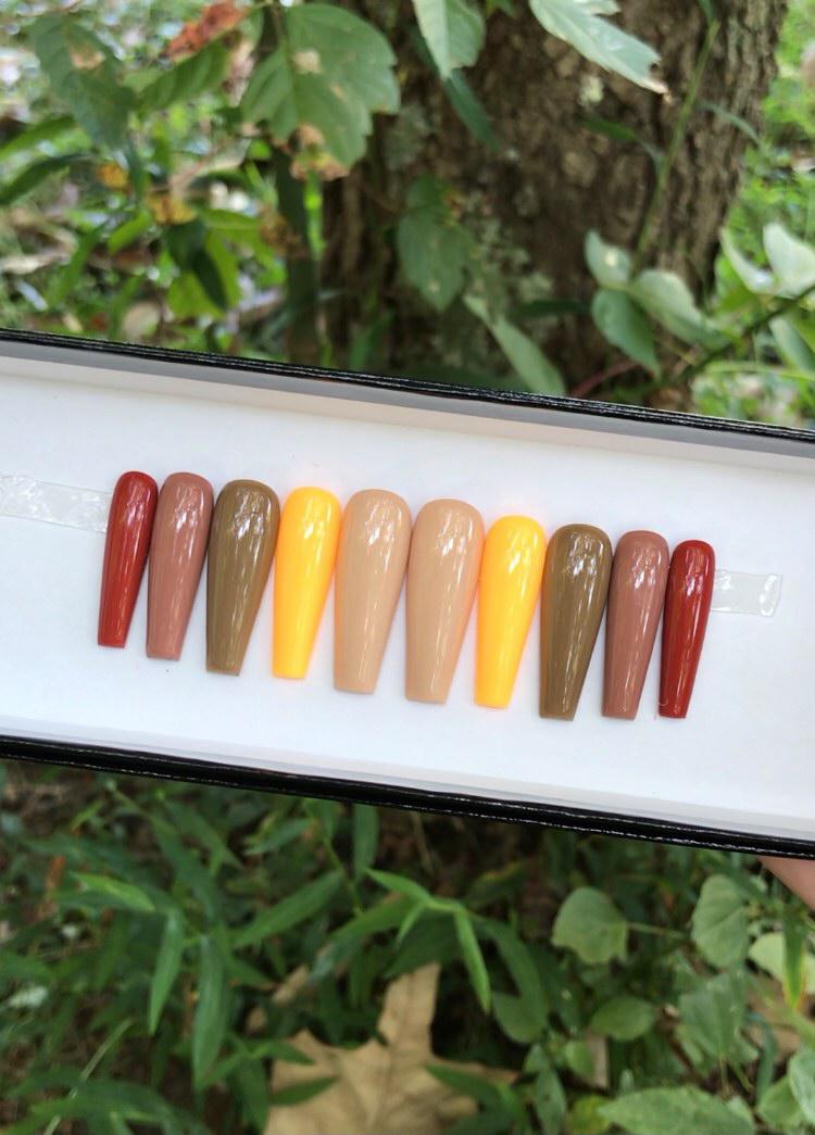 A set of 10 press on nails. Each order of a press on nail set comes with instructions on how to apply the press on nails as well as an option to purchase a nail glue care pack, a sticky tab care pack, or none. I do have an option to purchase and upgraded nail care pack as well. (THIS IS HIGHLY RECOMMENDED) Nails are reusable with the proper care. CUSTOMIZATION IS ALWAYS POSSIBLE.