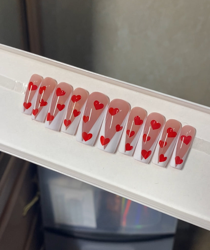 A set of 10 press on nails. Each order of a press on nail set comes with instructions on how to apply the press on nails as well as an option to purchase a nail glue care pack, a sticky tab care pack, or none. I do have an option to purchase and upgraded nail care pack as well. (THIS IS HIGHLY RECOMMENDED) Nails are reusable with the proper care. CUSTOMIZATION IS ALWAYS POSSIBLE.