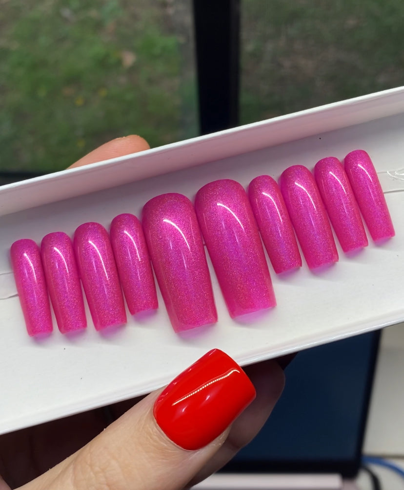A set of 10 press on nails. Each order of a press on nail set comes with instructions on how to apply the press on nails as well as an option to purchase a nail glue care pack, a sticky tab care pack, or none. I do have an option to purchase and upgraded nail care pack as well. (THIS IS HIGHLY RECOMMENDED) Nails are reusable with the proper care. CUSTOMIZATION IS ALWAYS POSSIBLE.
