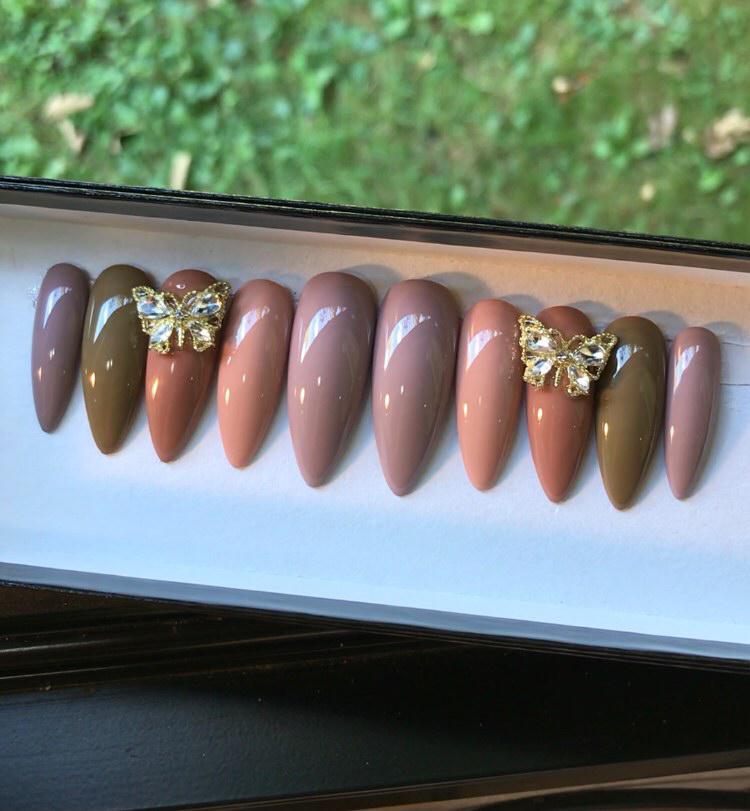 A set of 10 press on nails. Each order of a press on nail set comes with instructions on how to apply the press on nails as well as an option to purchase a nail glue care pack, a sticky tab care pack, or none. I do have an option to purchase and upgraded nail care pack as well. (THIS IS HIGHLY RECOMMENDED) Nails are reusable with the proper care. CUSTOMIZATION IS ALWAYS POSSIBLE.