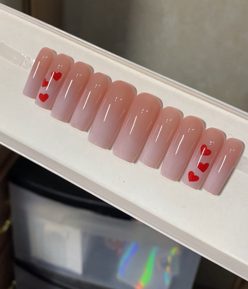 A set of 10 press on nails. Each order of a press on nail set comes with instructions on how to apply the press on nails as well as an option to purchase a nail glue care pack, a sticky tab care pack, or none. I do have an option to purchase and upgraded nail care pack as well. (THIS IS HIGHLY RECOMMENDED) Nails are reusable with the proper care. CUSTOMIZATION IS ALWAYS POSSIBLE.